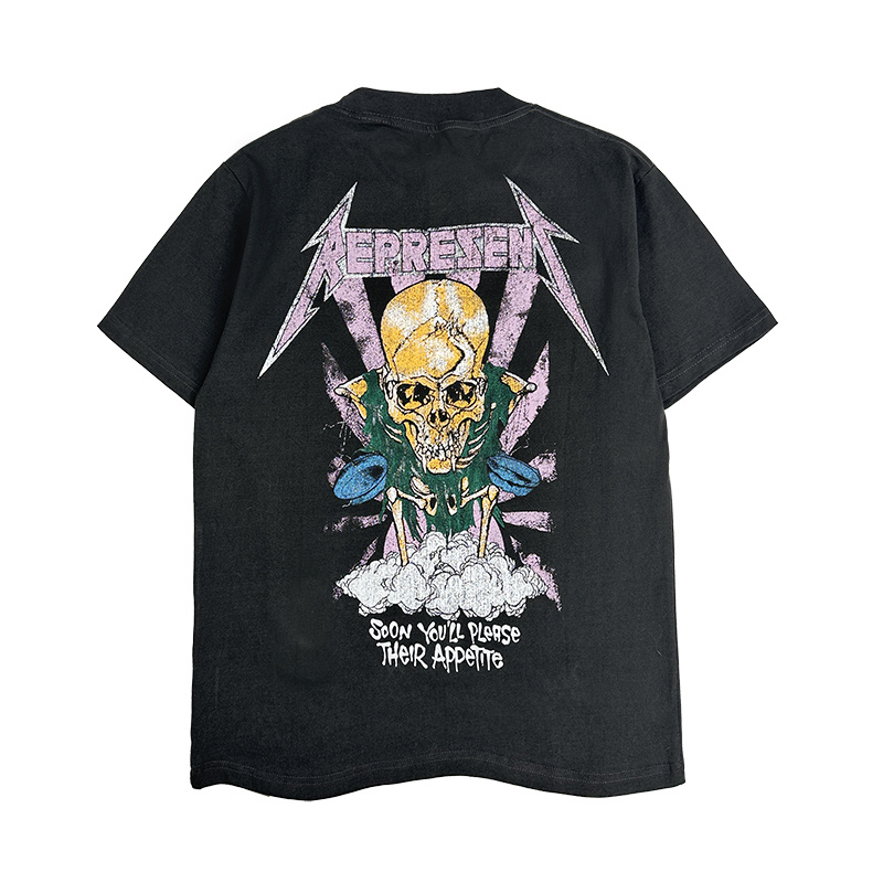 Стильная от бренда Represent чёрная футболка с принтом "Череп"
