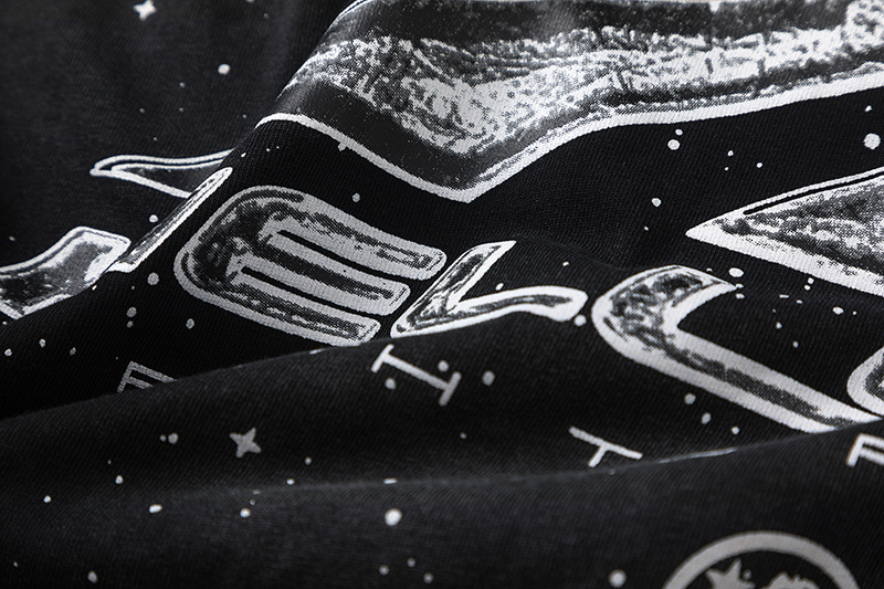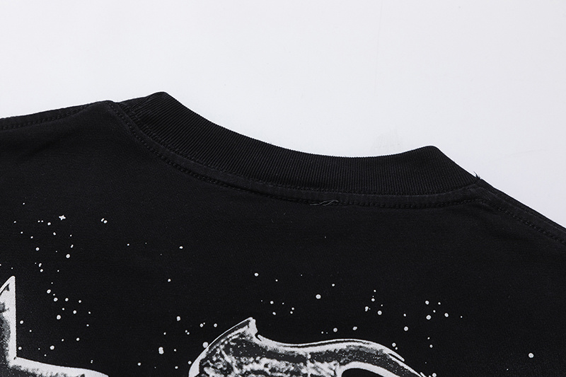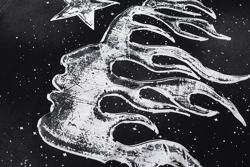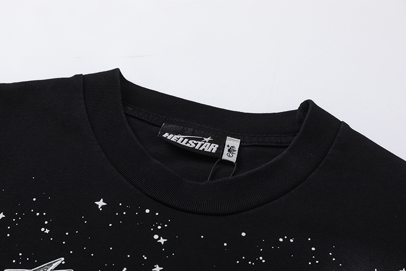 Стильная со звёздами чёрная футболка Hellstar с круглым вырезом