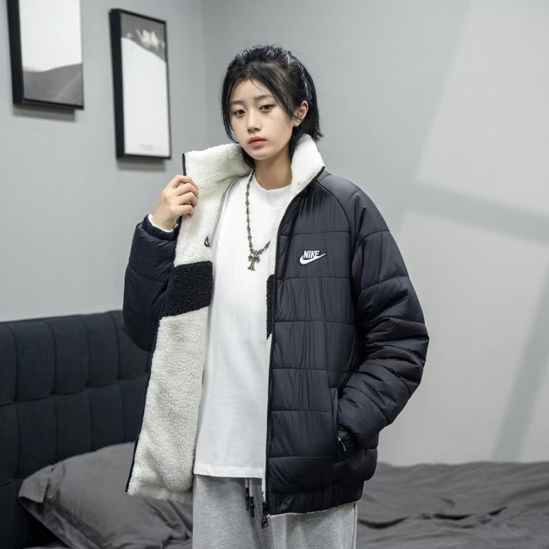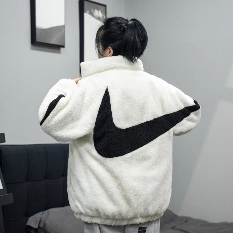 Стильная унисекс чёрно-белая Nike куртка-шерпа с воротником-стойка