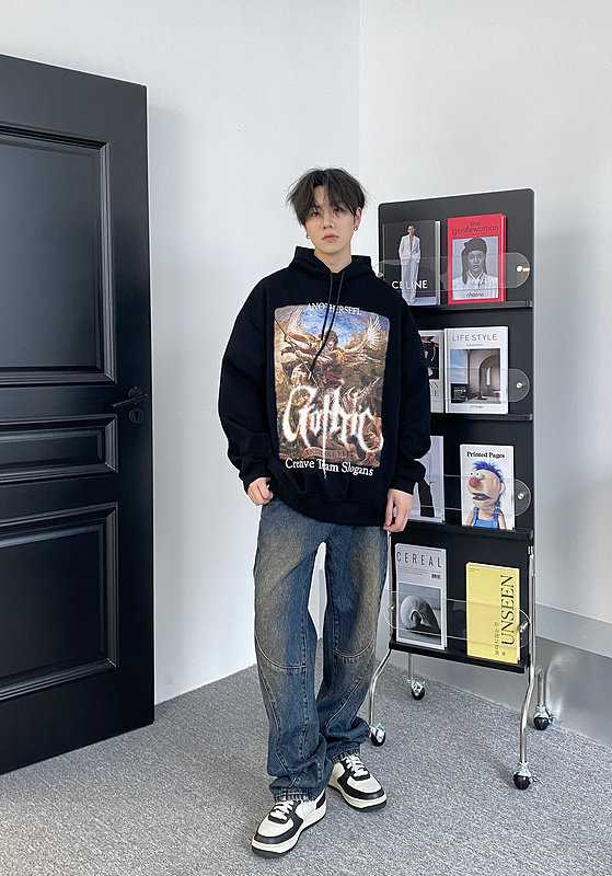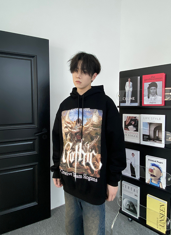 Стильное худи Anotherself черного цвета с рисунком ангела
