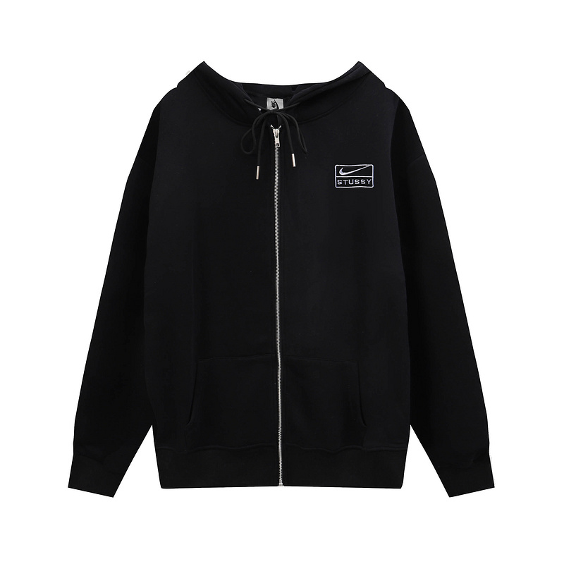 Стильное худи на молнии в черном цвете с лого Stussy на груди