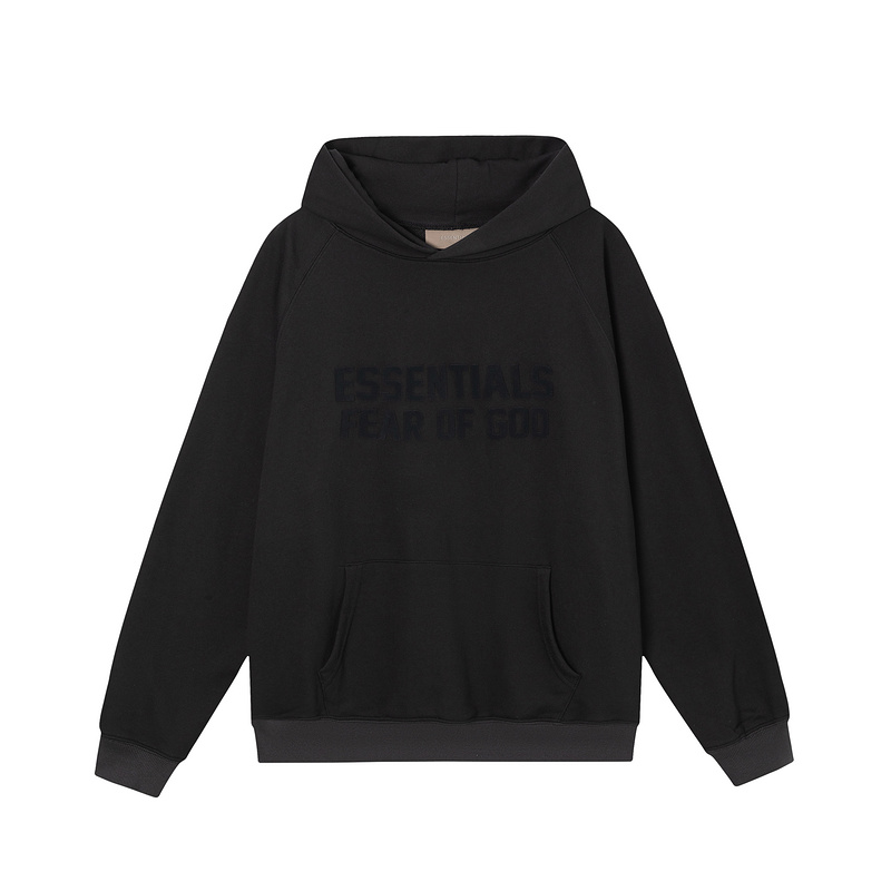 Стильное повседневное чёрное худи с прорезиненным лого Fear Of God