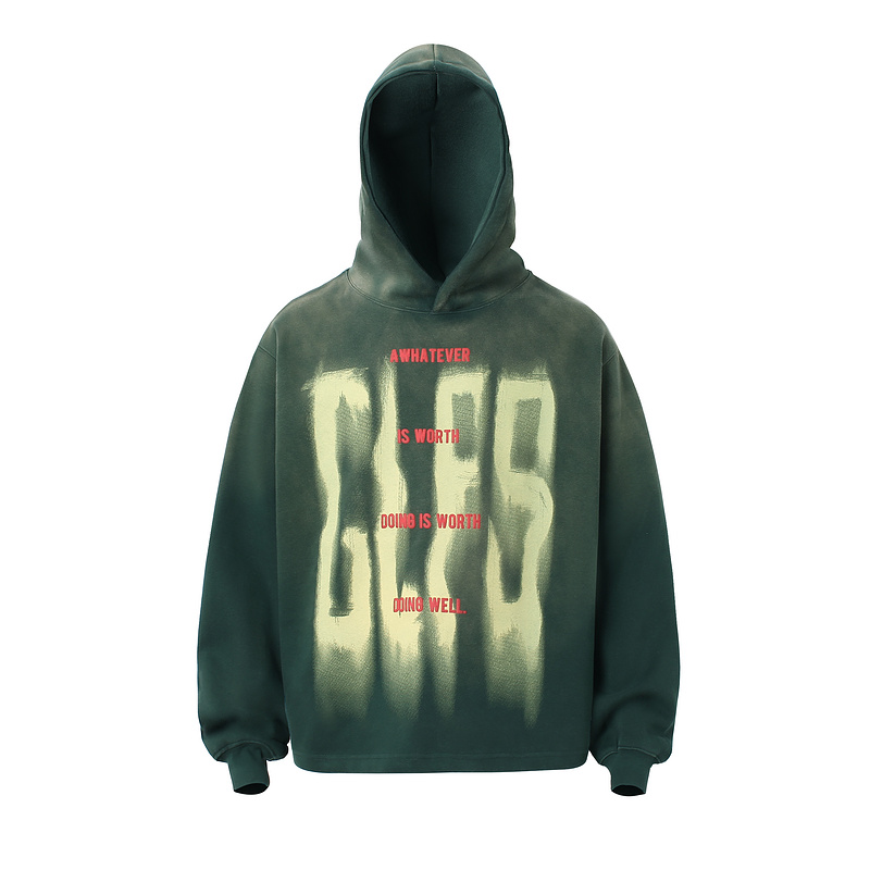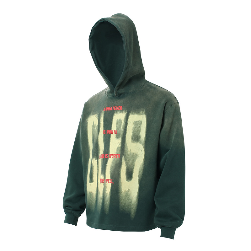 Стильное прямого фасона зелёное худи GLFS с капюшоном
