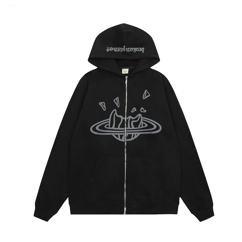 Стильное зип худи на молнии от бренда Broken Planet в черном цвете
