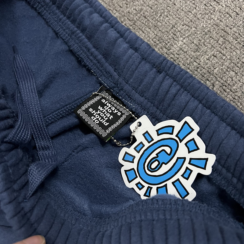 Стильные с логотипом штаны на резинке ADWYSD темно-синего цвета
