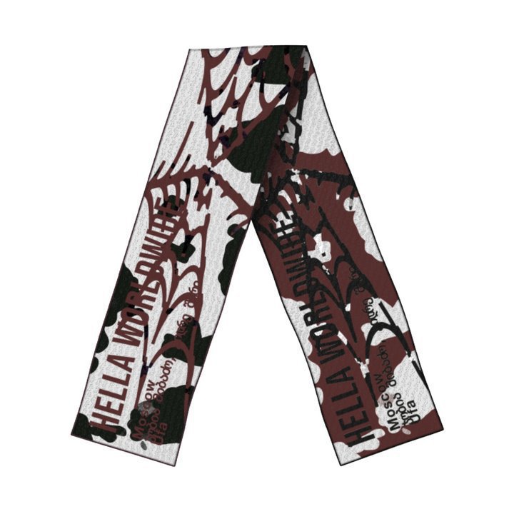 Стильный бело-коричневого цвета шарф с черными пятнами