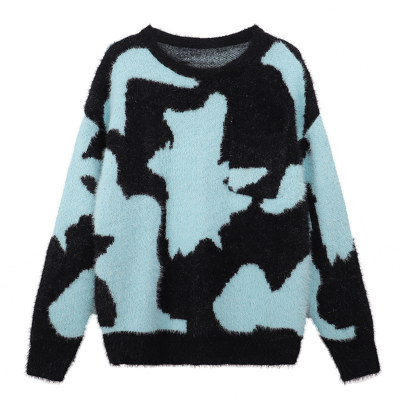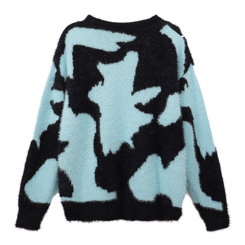 Стильный Fashion свитер черного цвета с голубыми пятнами