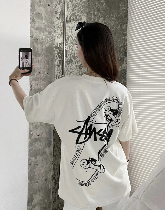 Stussy футболка белого цвета с брендовым текстовым рисунком