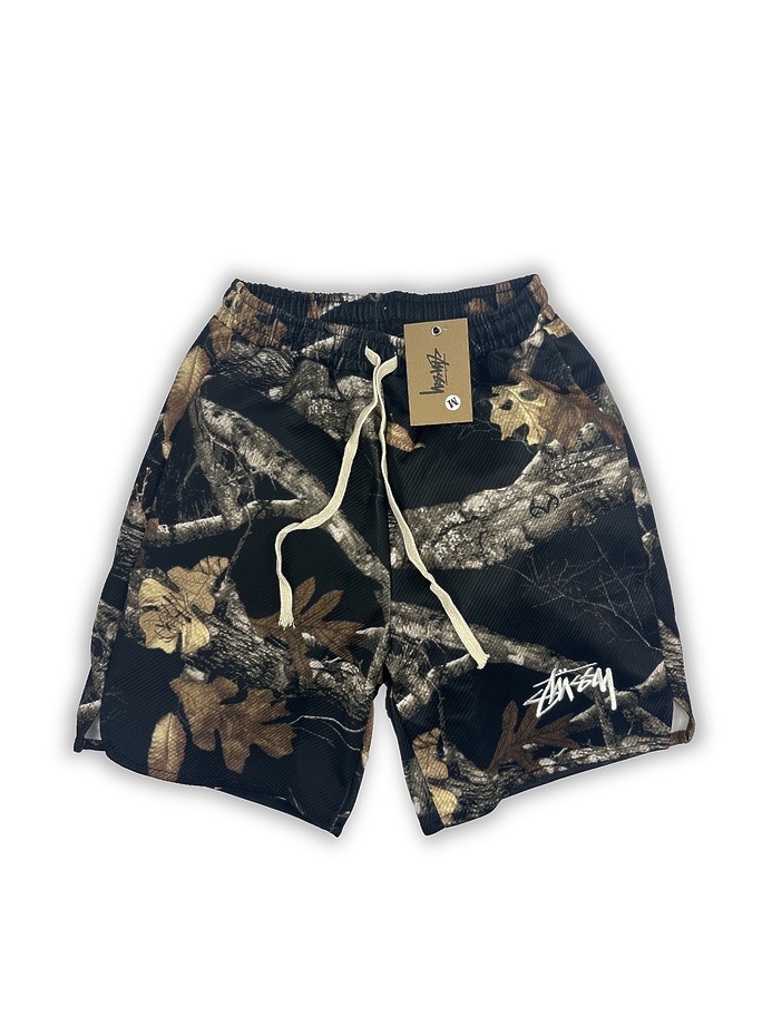 Stussy шорты в черном цвете на резинке с коричневым принтом