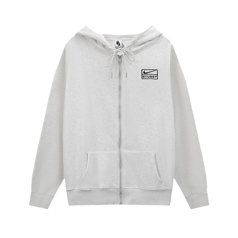 Stussy теплое зип худи на молнии в светло-сером цвете