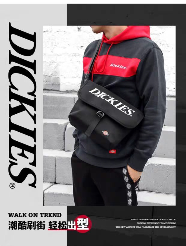 Сумка чёрная на плечо с принтом Dickies достаточно вместительная
