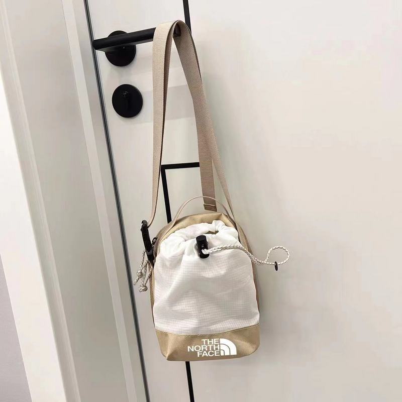Сумка фирмы The North Face на шнурке бело-бежевого цвета