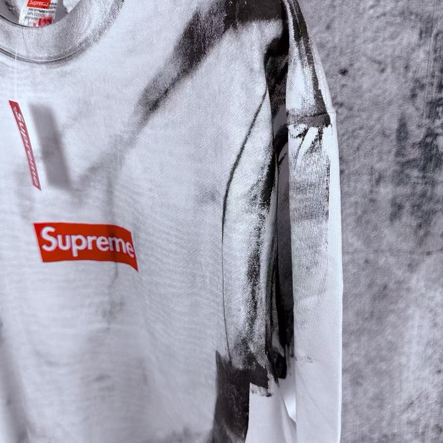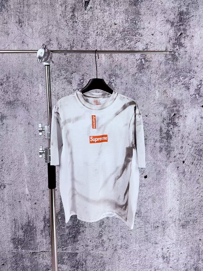 Supreme x Maison Margiela футболка в белом цвете с черными потертостями