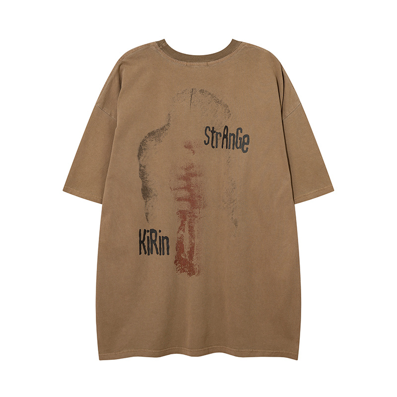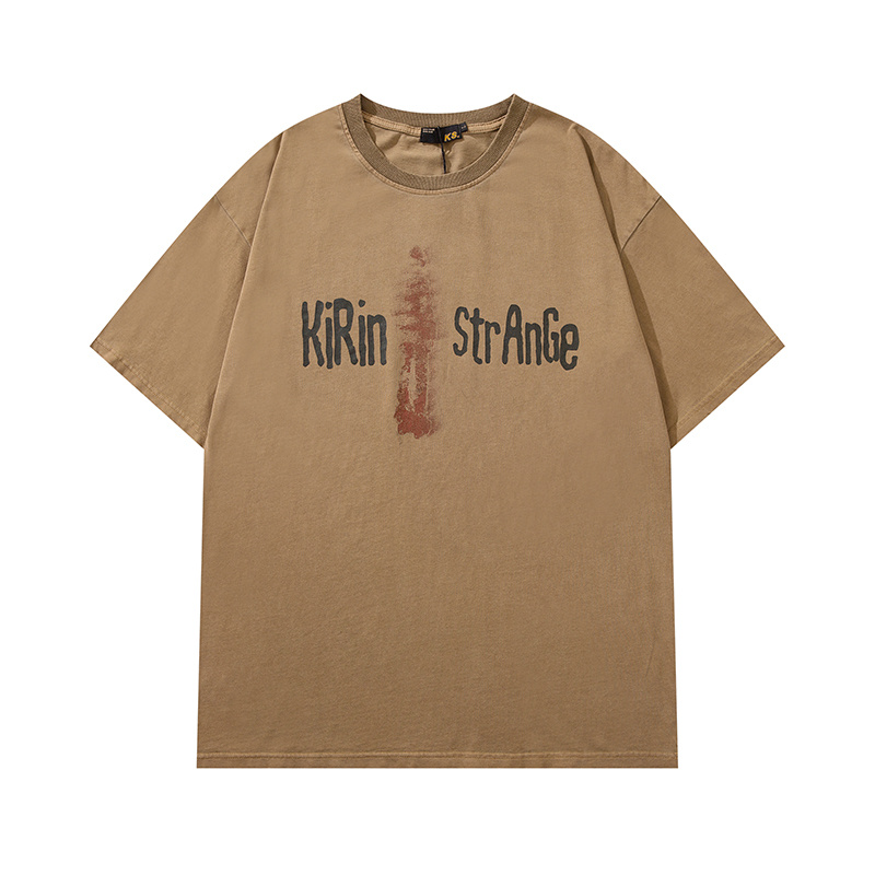 Светло-коричневая стильная футболка KIRIN STRANGE с логотипом
