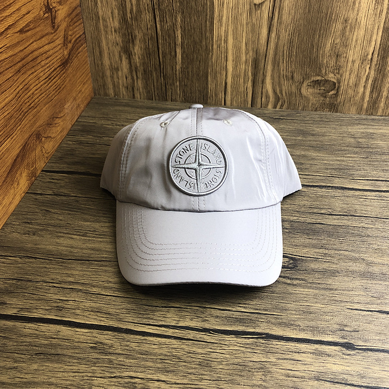 Светло-серая с вышитым лого Stone Island бейсболка с козырьком