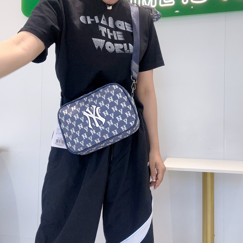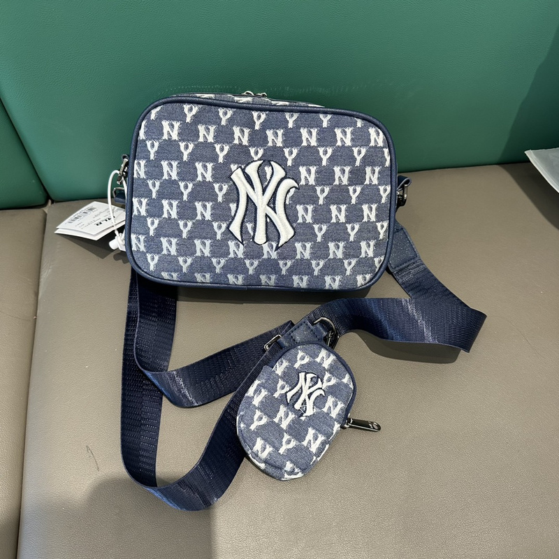 Светло синяя с нашивкой и принтом NEW YORK брендовая сумка MLB