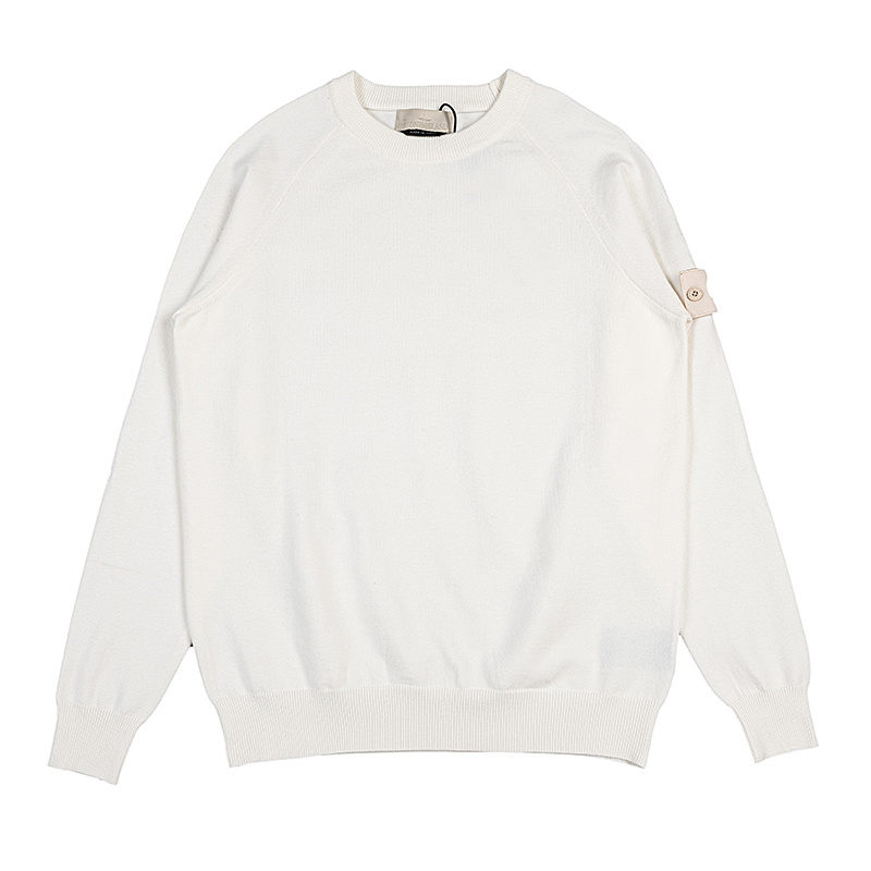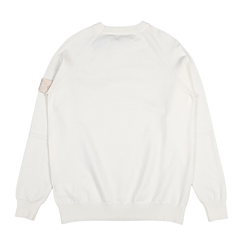Свитер Stone Island белый с круглым вырезом и спущенным плечом
