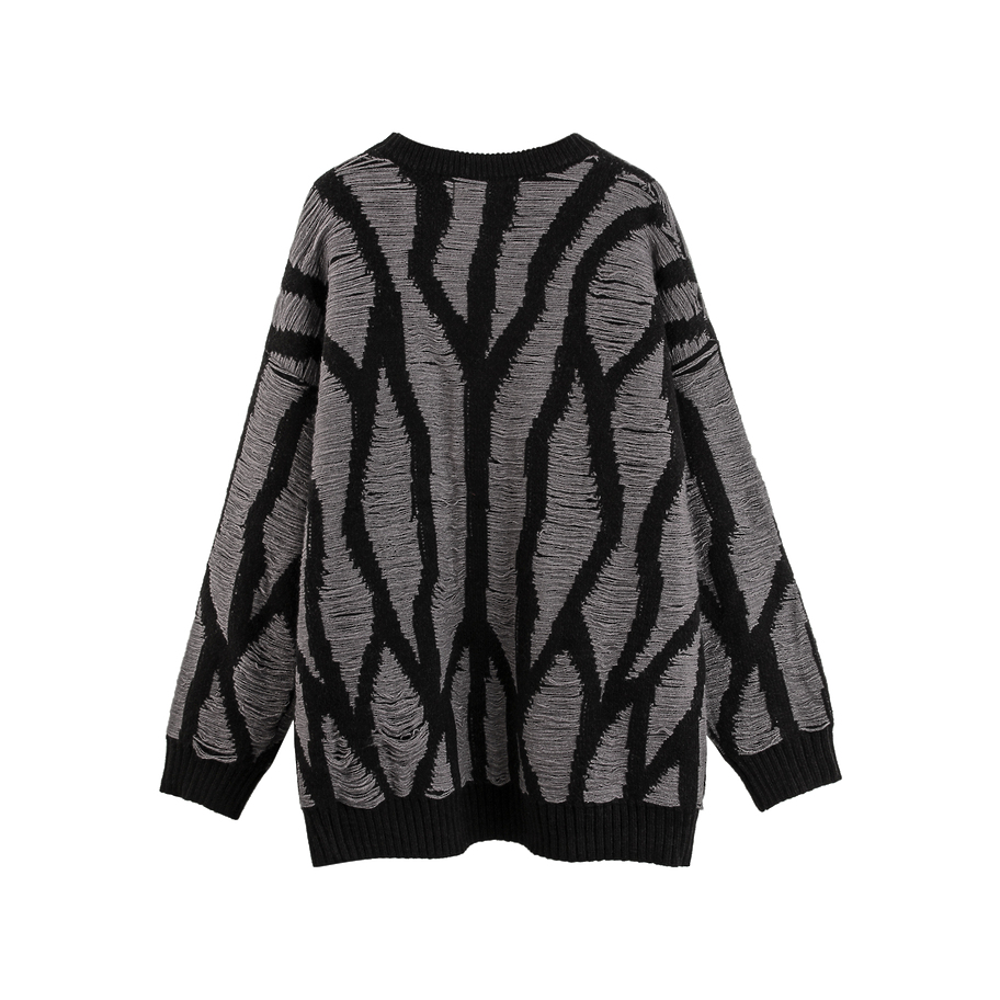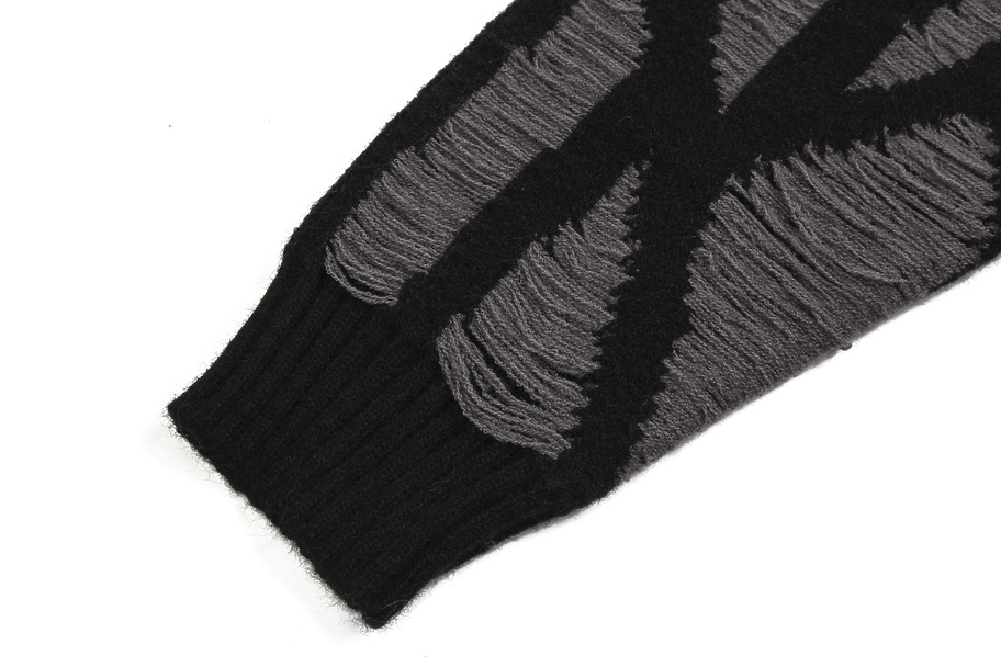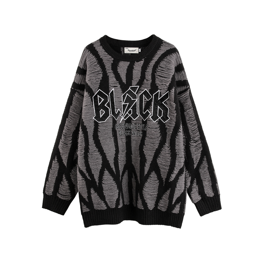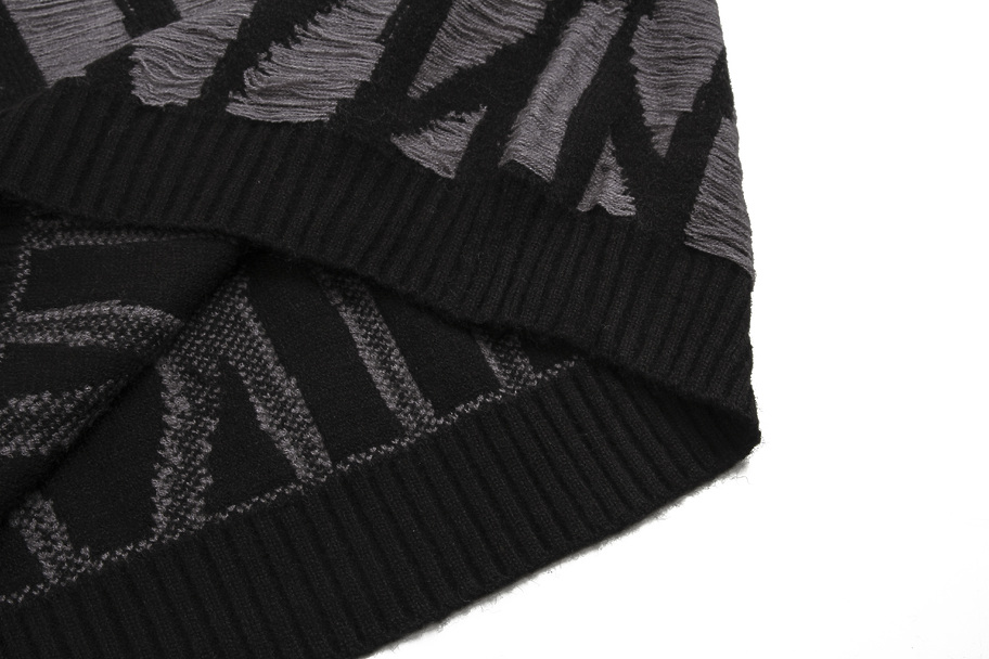 Удлиненный черно-серый свитер VANCARHELL с надписью BLACK на груди
