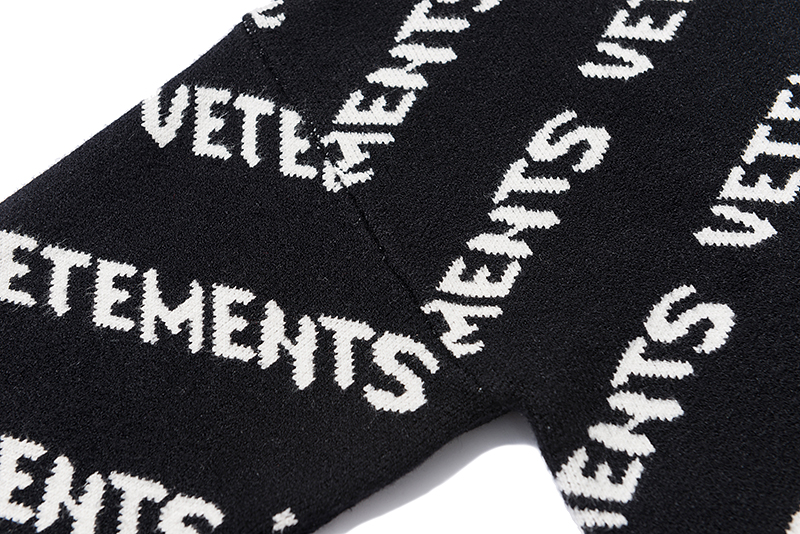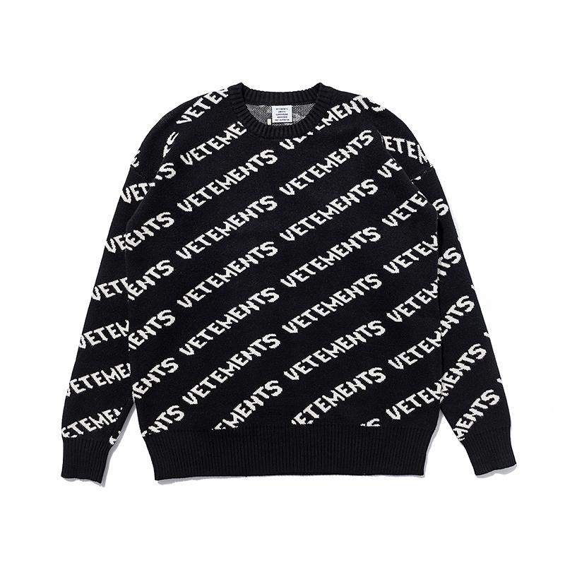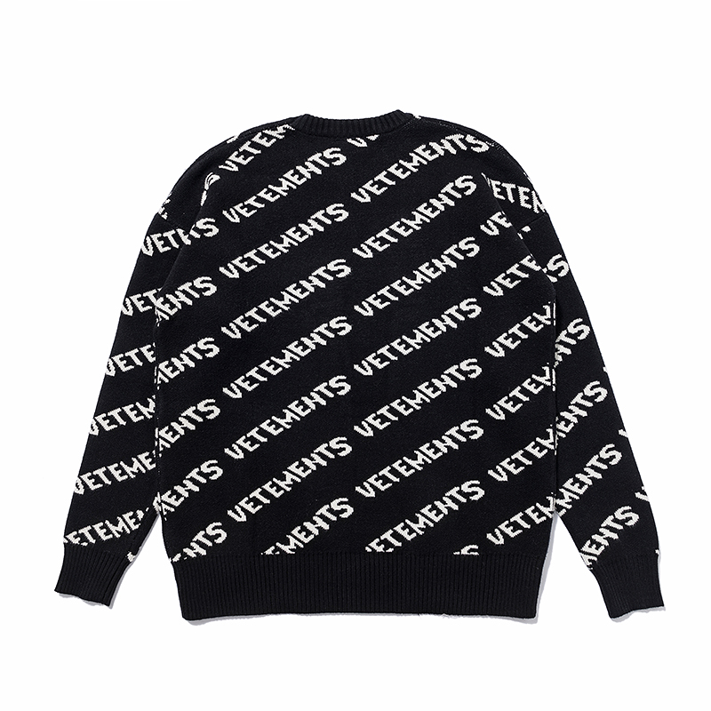 Унисекс черный свитер VETEMENTS WEAR с белыми надписями по диагонали