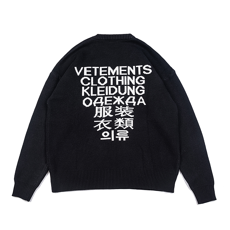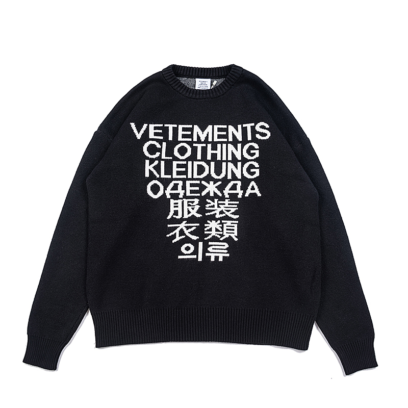 Свитер черный хлопковый VETEMENTS WEAR с надписями на разных языках