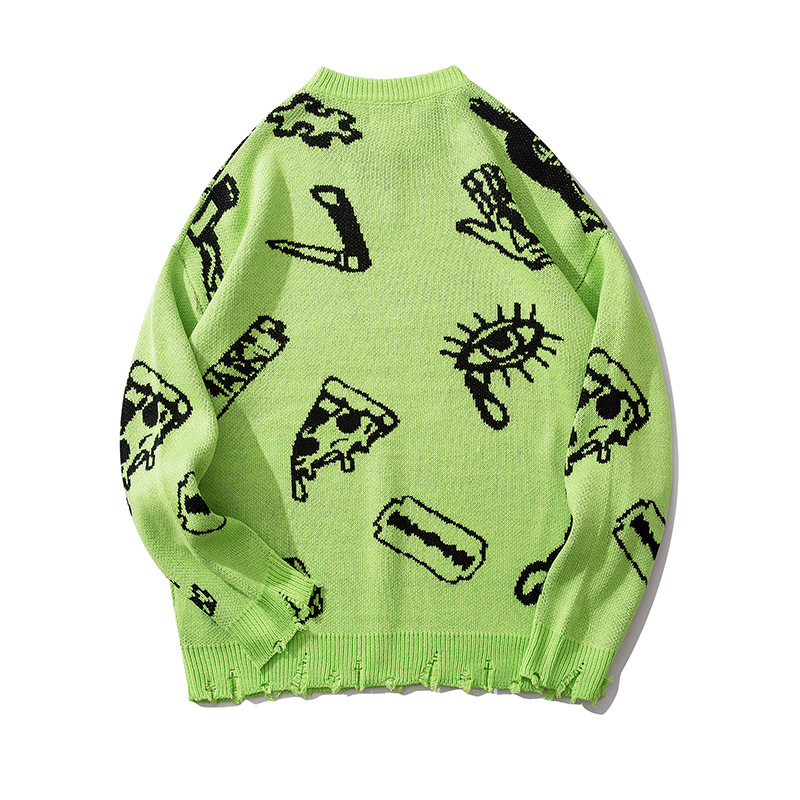 Свитер салатового цвета с вышитым рисунком со всех сторон