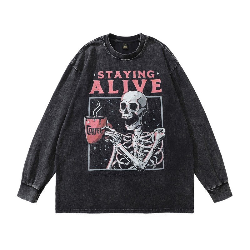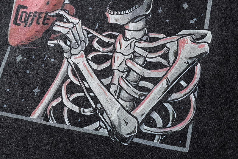 Свитшот базовый TKPA черного цвета с изображением "Скелет и кофе"