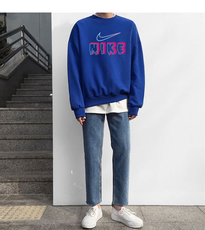 Свитшот брендовый оверсайз без начёса с принтом Nike синего-цвета