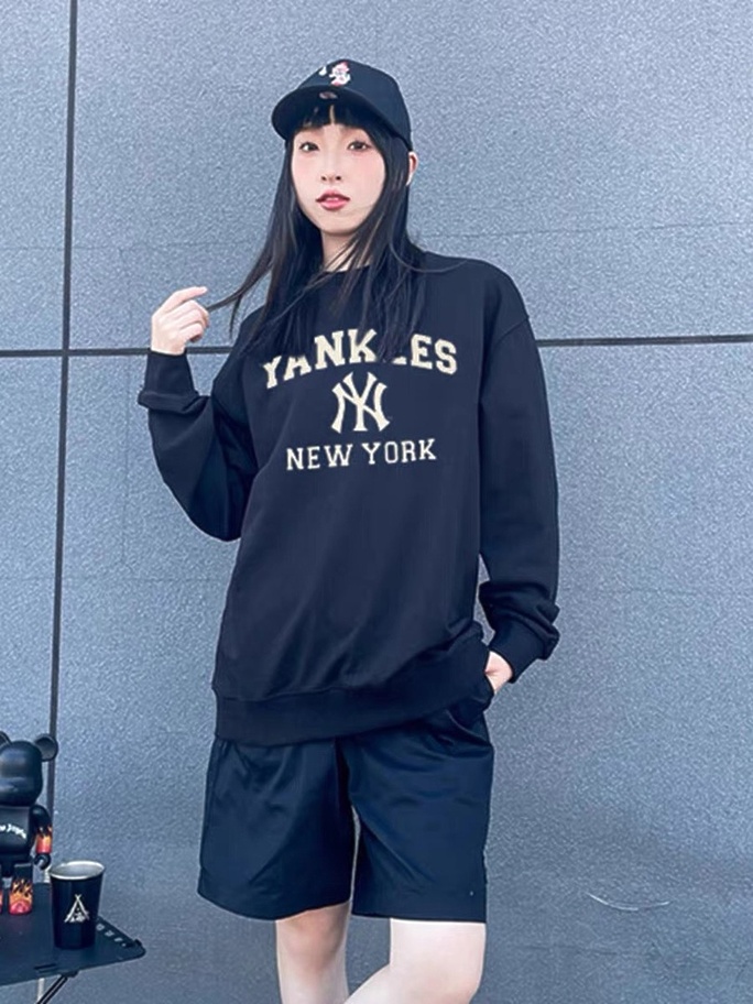Свитшот MLB синий со спущенной линией плеча и круглым вырезом