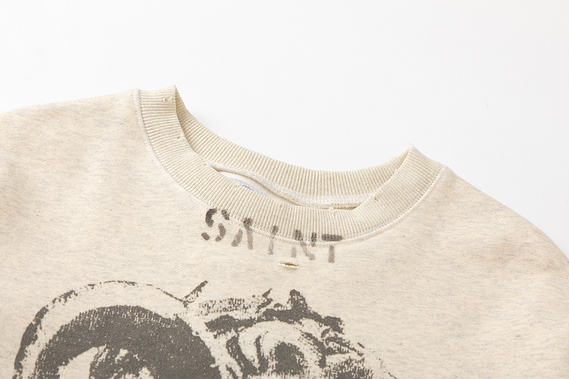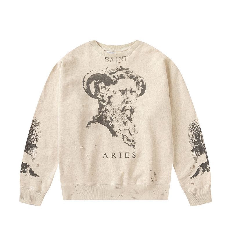 Свитшот Saint Michael бежевый с разрезами и принтом "Aries"