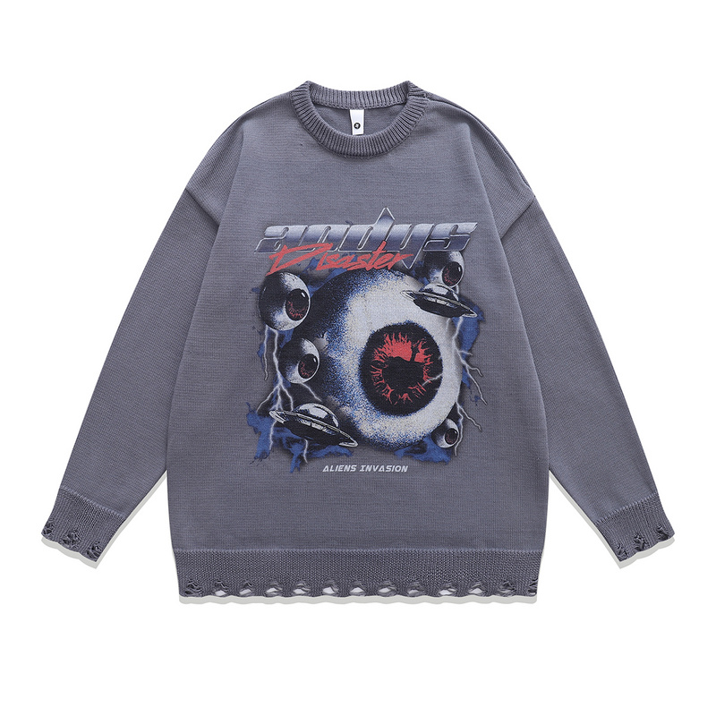 Свитшот TKPA с "рваными" краями и рисунком серого цвета