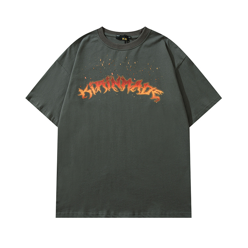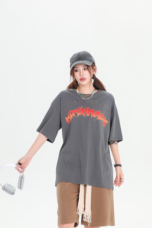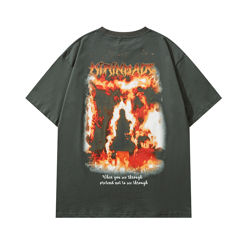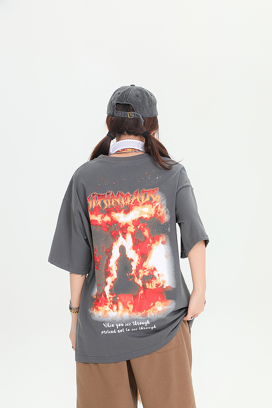 Свободная серого цвета футболка KIRIN STRANGE с "огненным" принтом