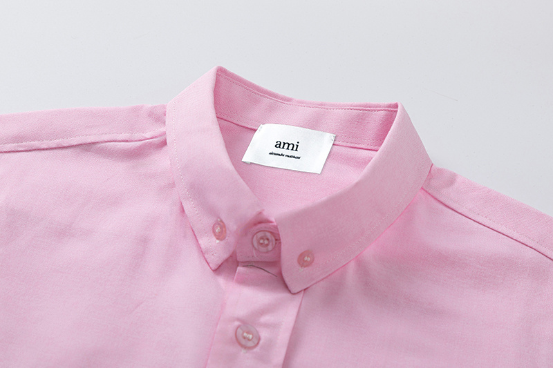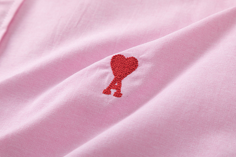 Свободного кроя розовая рубашка AMI на пуговицах с короткими рукавами