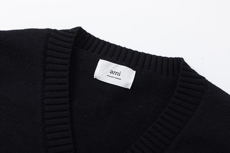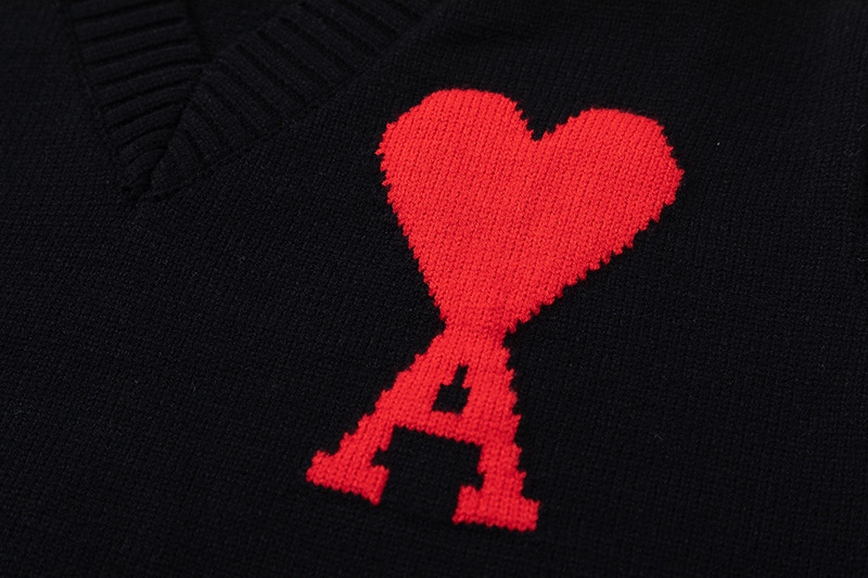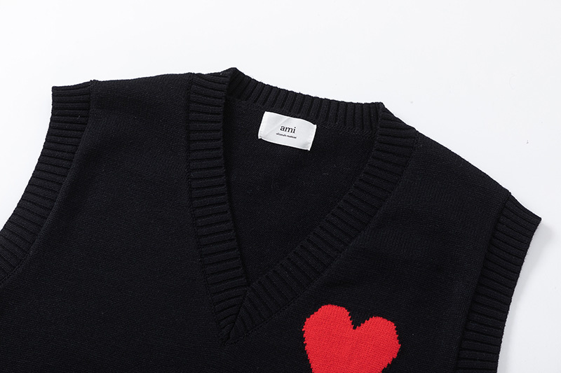 Свободного кроя с манжетой внизу трикотажный чёрный жилет AMI