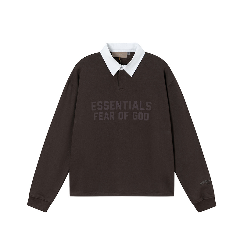 Тёмно-коричневое от бренда Fear Of God поло выполнено из 100% хлопка