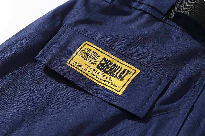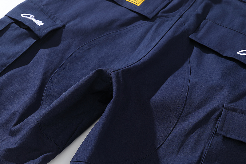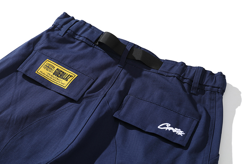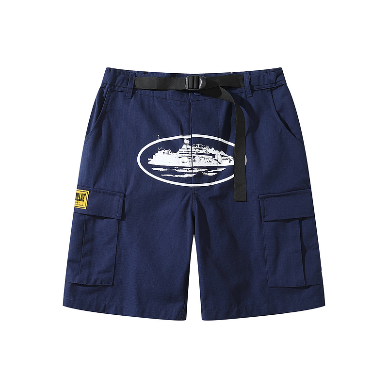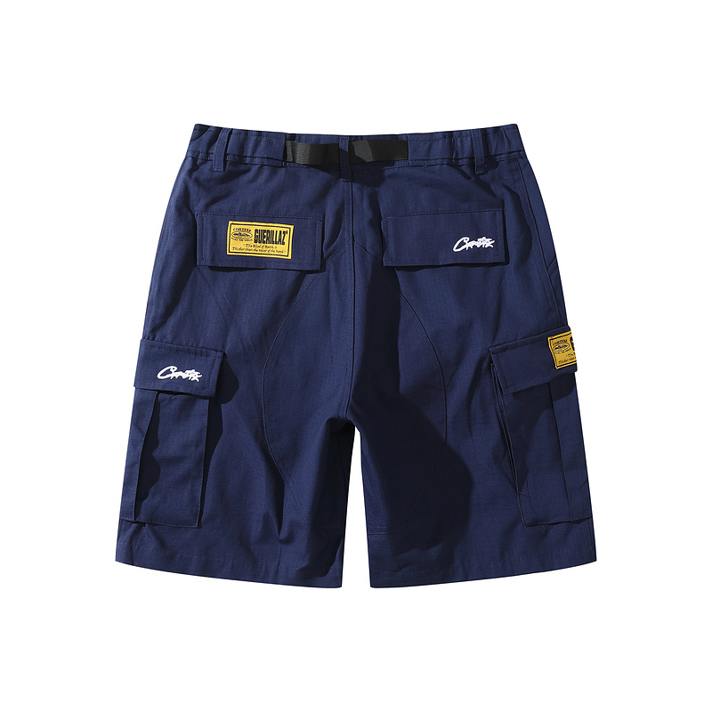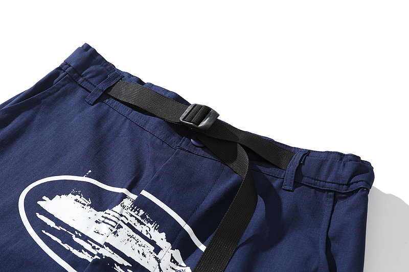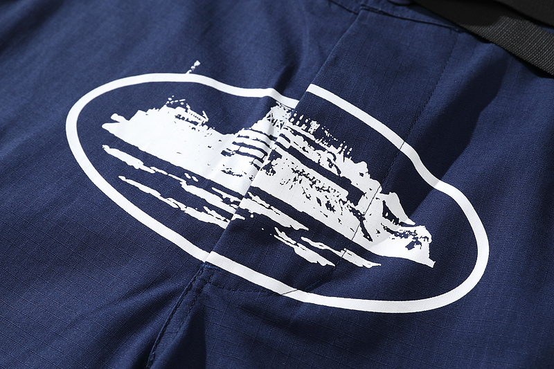 Тёмно-синие прямые шорты Corteiz с регулируемым поясом на талии
