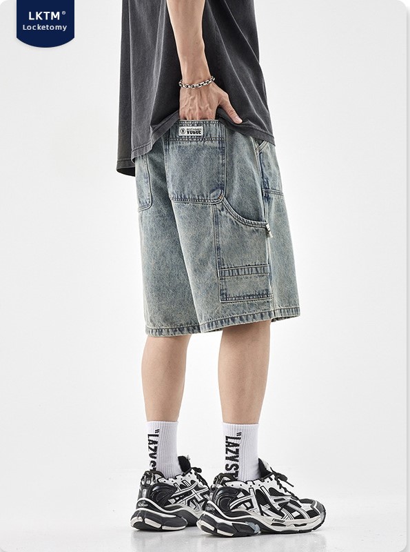 Тёмно-синие с эффектом потёртости шорты Locketomy широкие
