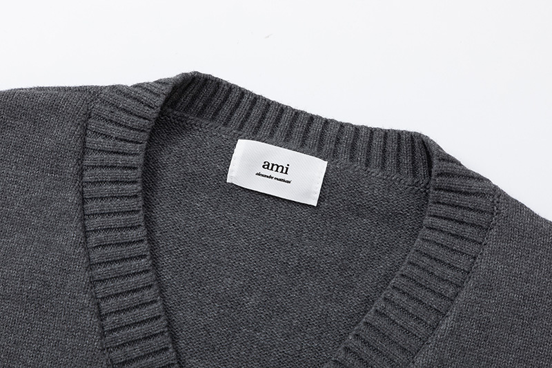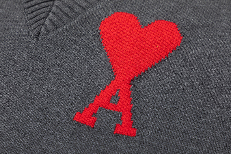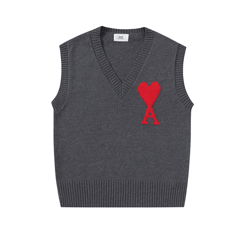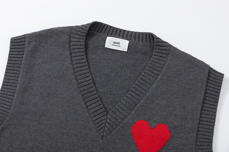 Тёплый AMI серый жилет без рукавов с глубоким вырезом горловины