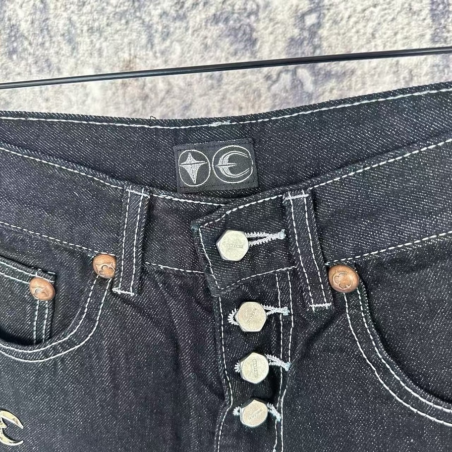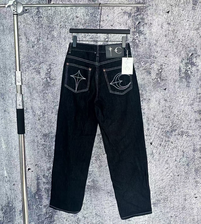Thug club джинсы в черном цвете с прошитой белой строчкой