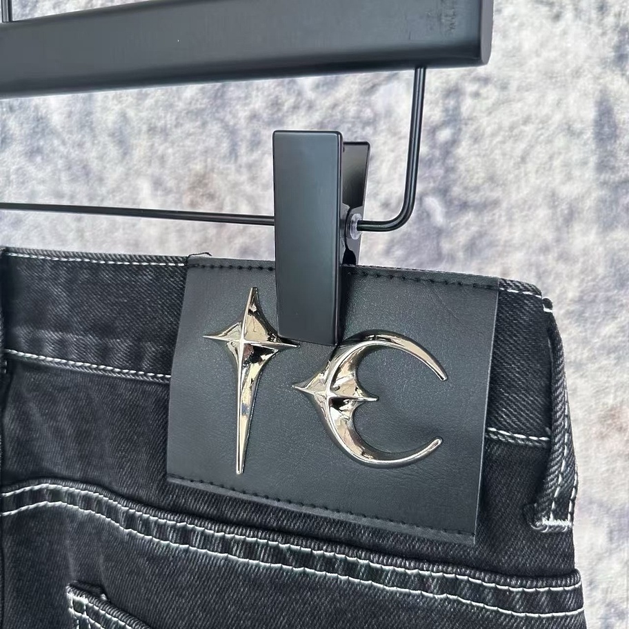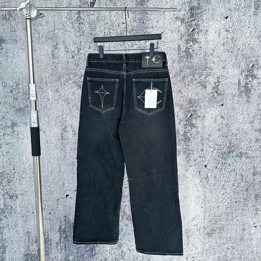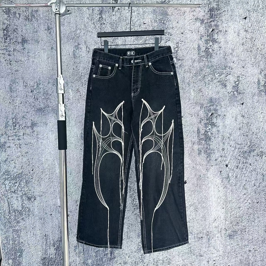 Thug club джинсы в черном цвете с вышитым принтом белого цвета