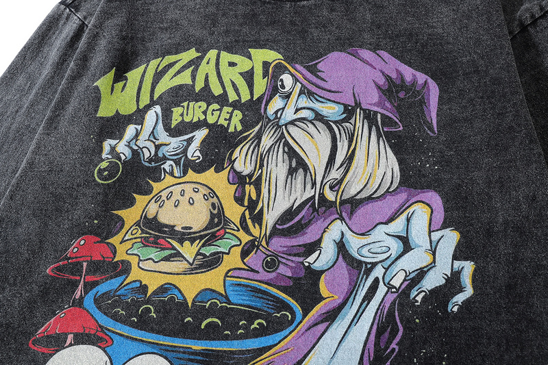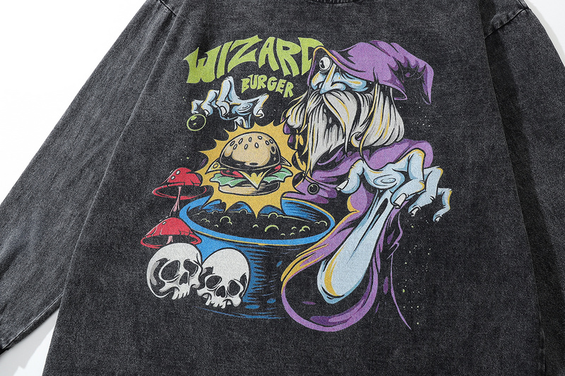 TKPA чёрный выстиранный лонгслив с ярким принтом "Волшебник"
