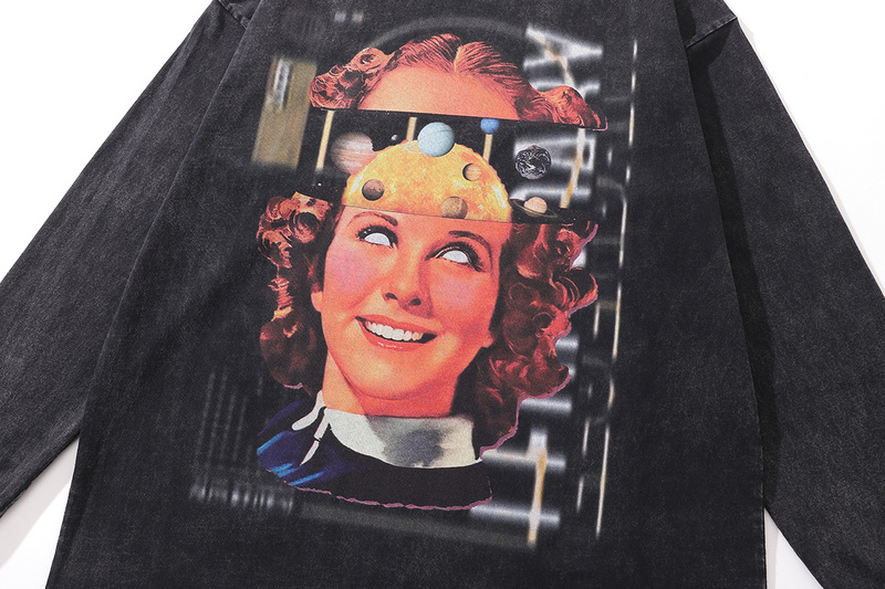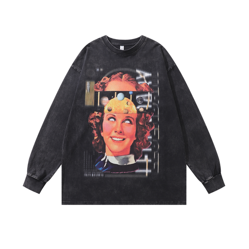 TKPA чёрный выстиранный со спущенными рукавами лонгслив