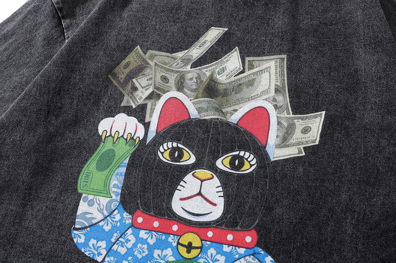 TKPA выстиранная чёрная футболка с ярким принтом «Манящий кот»