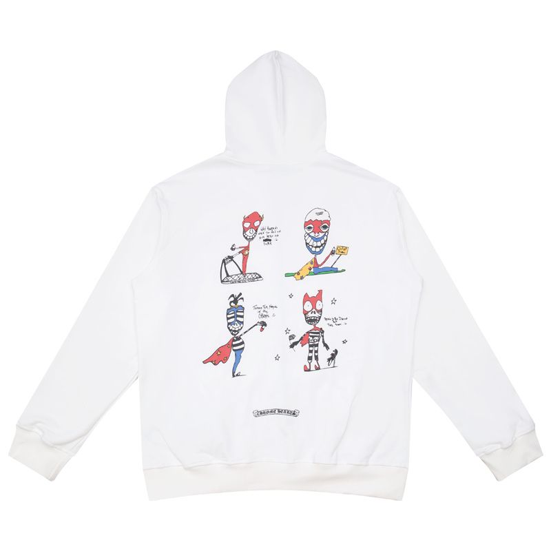 Толстовка на молнии белая Chrome Hearts с принтом на спине супергерои