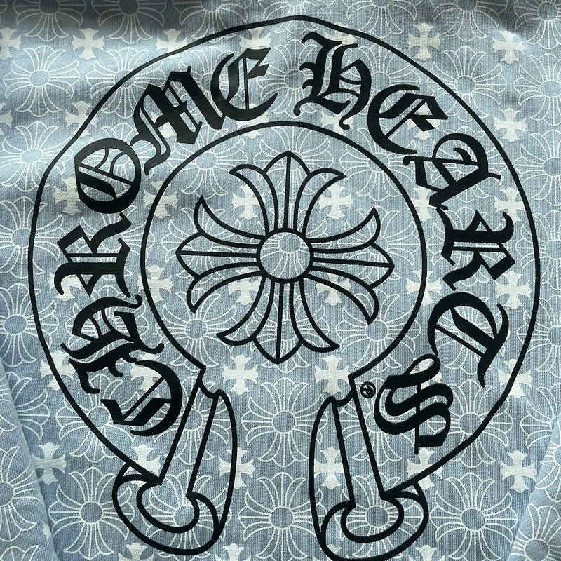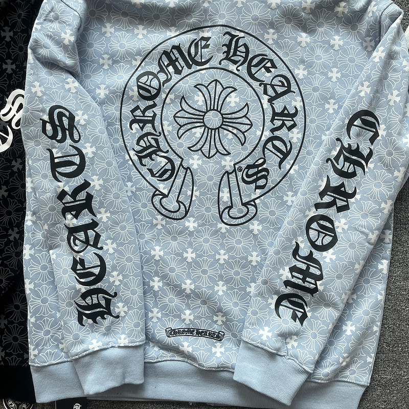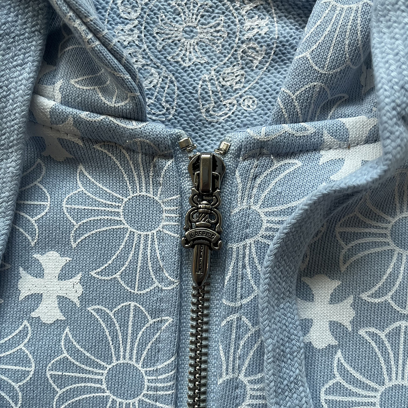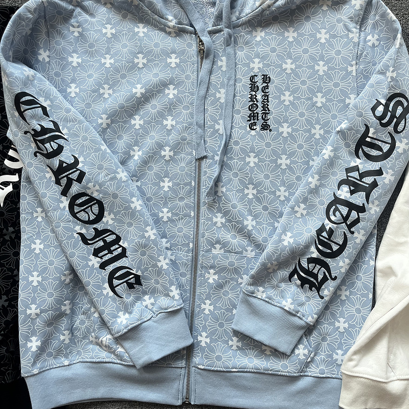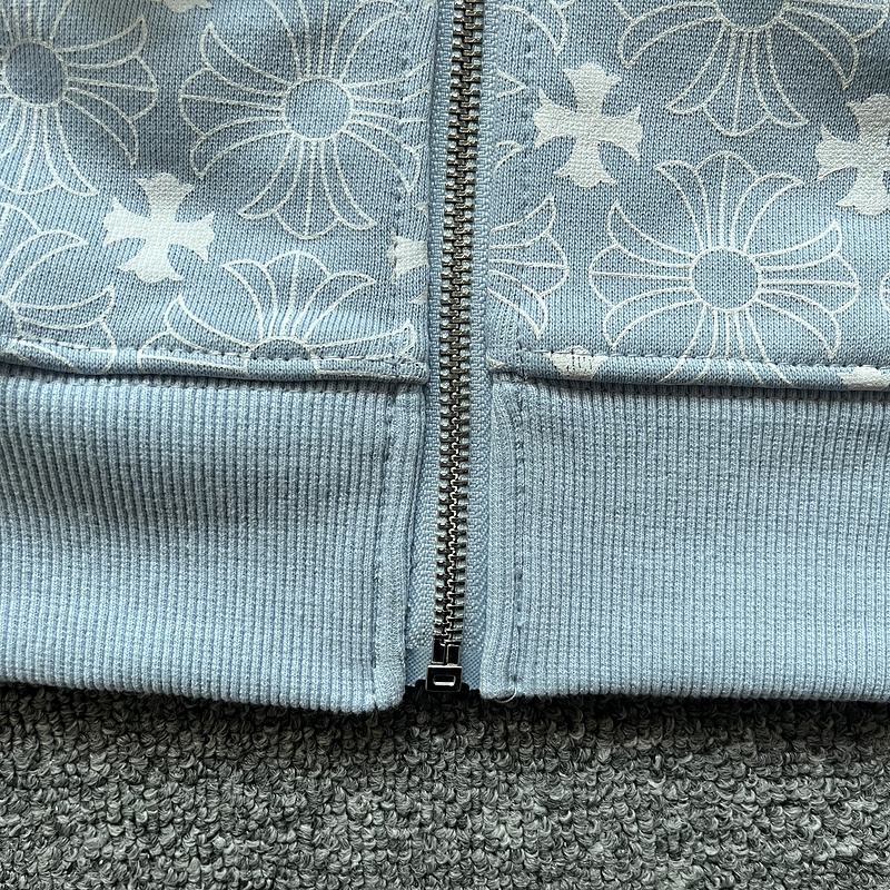 Толстовка на молнии голубая CHROME HEARTS с принтами