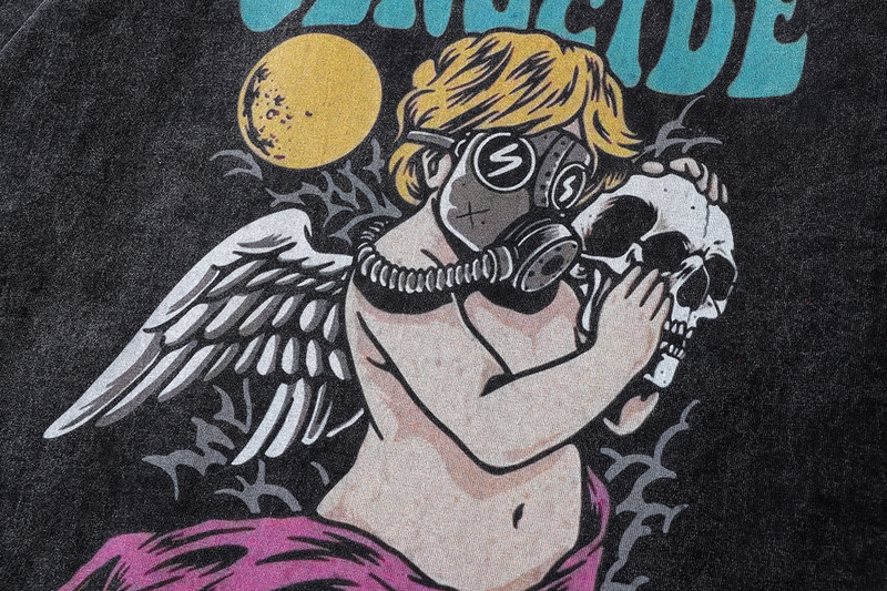 Трендовая чёрная футболка с эффектом потёртости TKPA
