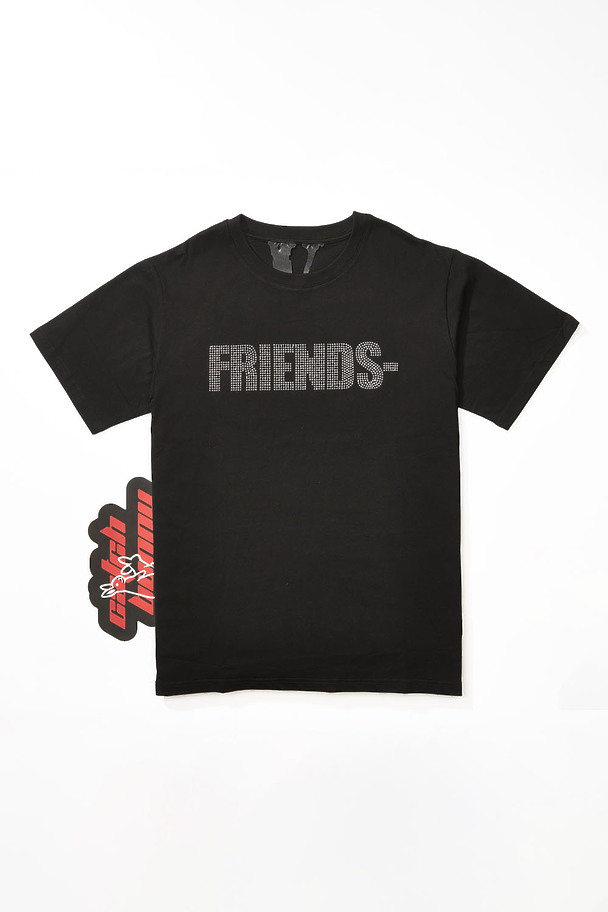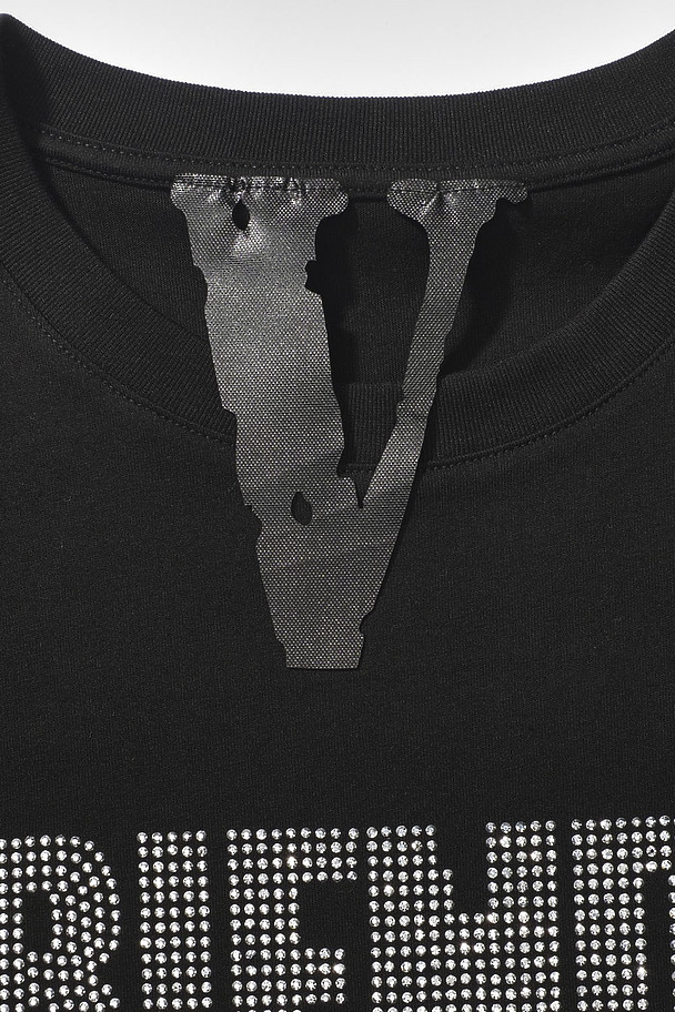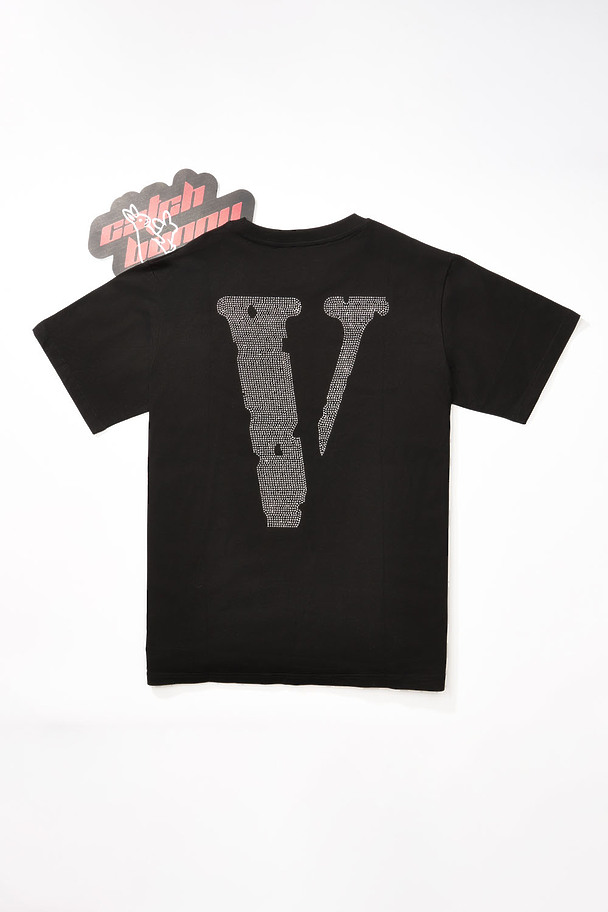 Трендовая чёрная футболка VLONE со стразами на груди и спине