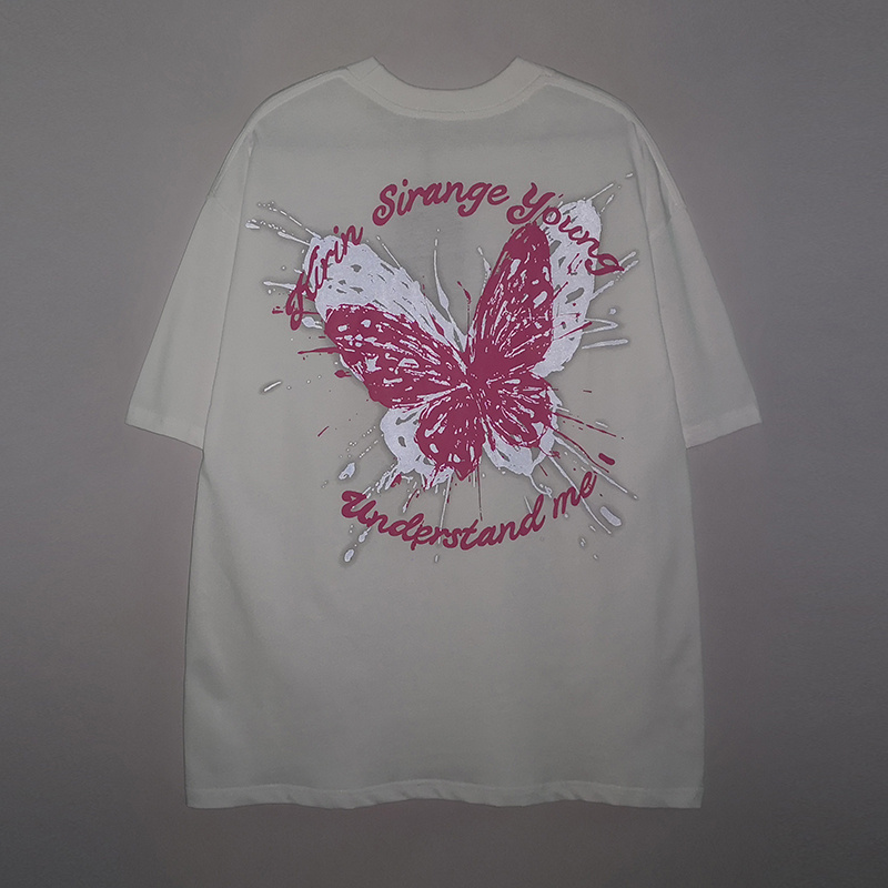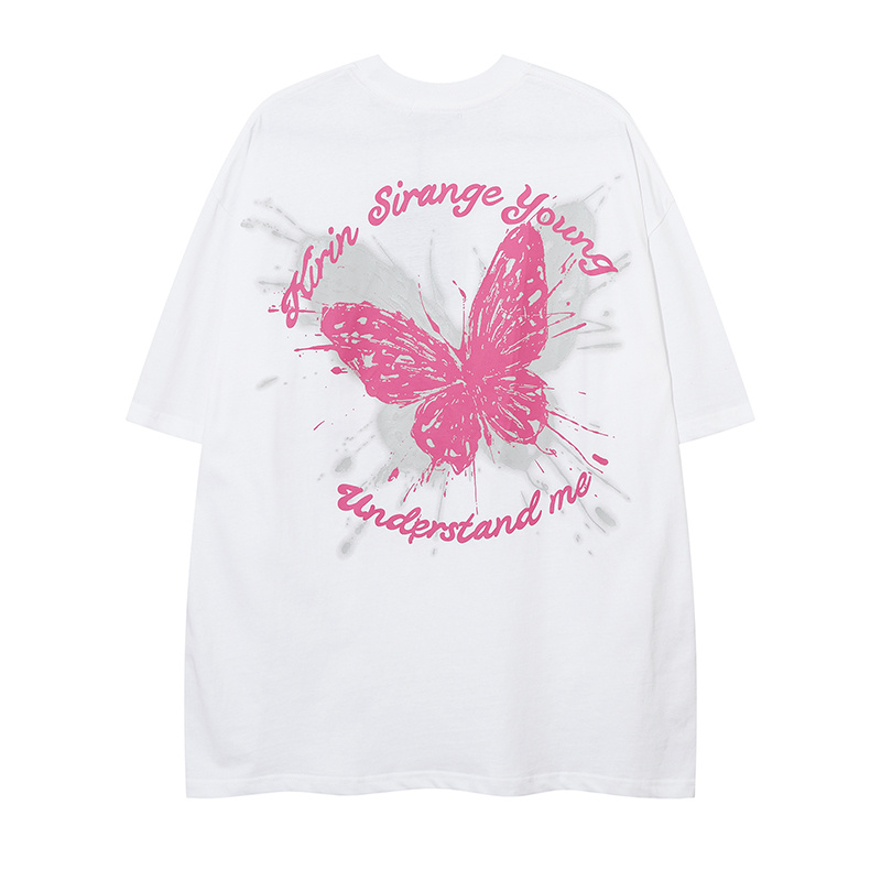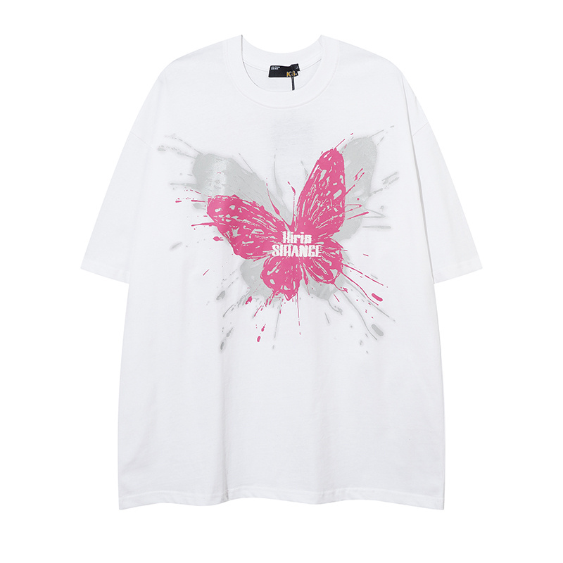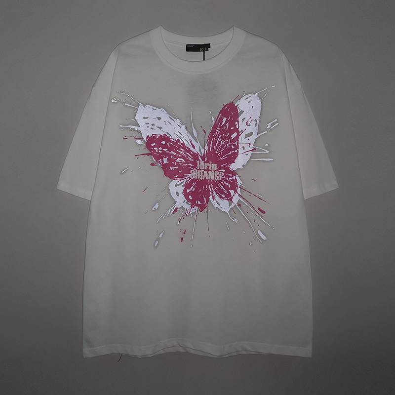 Трендовая футболка KIRIN STRANGE белого цвета с яркой бабочкой