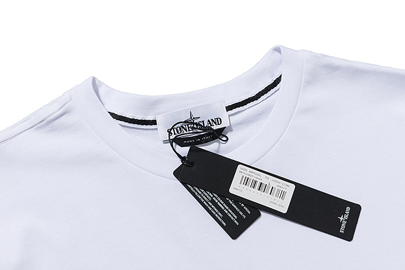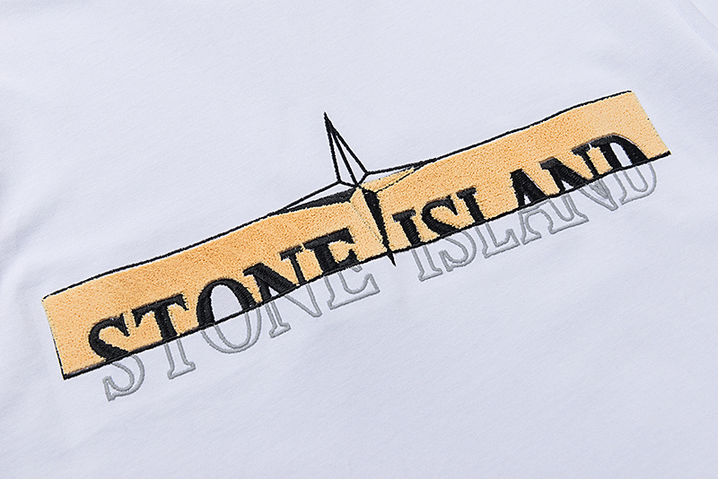 Трендовая футболка Stone Island белая с ворсистым логотипом на груди