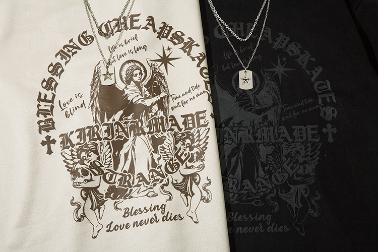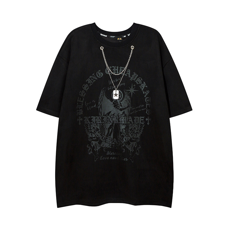 Трендовая KIRIN STRANGE черного цвета футболка с подвеской