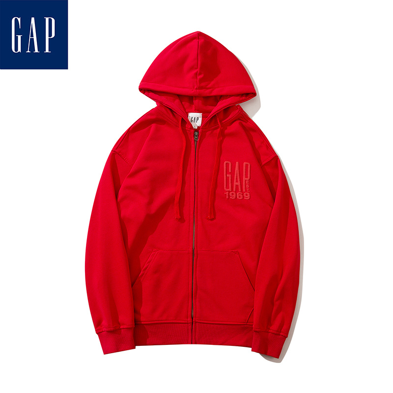 Трендовая красная толстовка с капюшоном GAP свободного кроя на молнии
